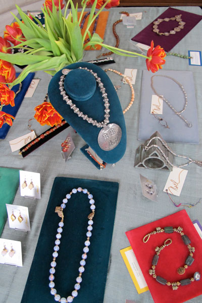 Private Brighton, UK collection: 4 Strand Silver and Gold Bracelet, Antique Ivory Earrings, 18K gold wash on copper earrings