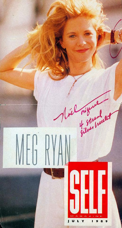 Cover of SELF Magazine in 1989 with Meg Ryan wearing a Signature Noel 4 Strand Silver and Gold Bracelet